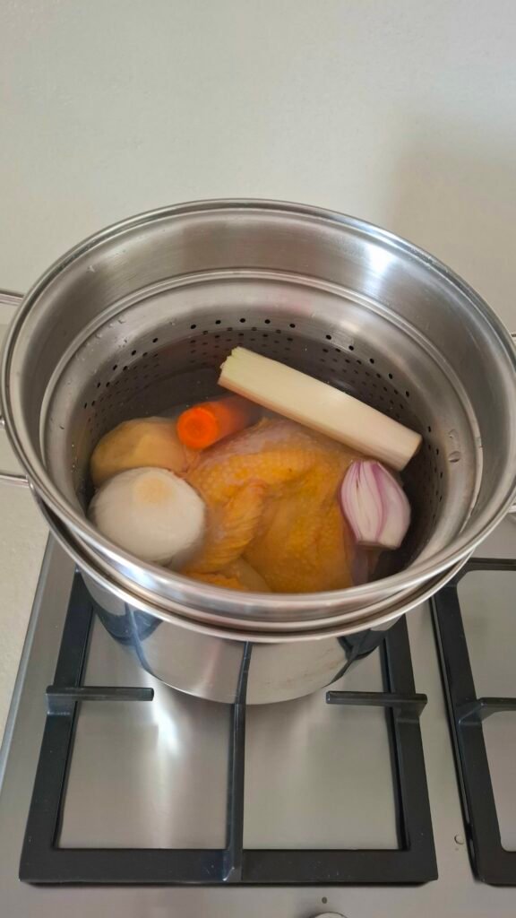 Da quando vivo qui in Emilia-Romagna, però, ho scoperto una cosa: non avevo mai saputo fare davvero un brodo. Non basta bollire acqua e carne: un vero brodo deve avere densità, profumo e ricchezza, quella profondità che trasforma ogni piatto. E proprio per ottenere questa pienezza, deve esserci il cappone: lui è il vero protagonista. Solo grazie al cappone il brodo diventa così speciale che anche una semplice minestra si trasforma in un piatto ricchissimo e profumatissimo. Quando preparo il brodo ci metto tante verdure, perché danno sapore e colore, tranne il sedano; personalmente non lo amo molto ma la tradizione lo includerebbe. Da quando ho imparato a fare il brodo di cappone, i miei piatti hanno avuto una vera svolta: tortellini, cappelletti, lasagne, risotti, zuppe, brasati, spezzatini, arrotolati… ogni ricetta prende vita, diventa più intensa e piena di sapore. Ho capito che senza un buon brodo di cappone, nessuno di questi piatti raggiunge la sua vera anima.
