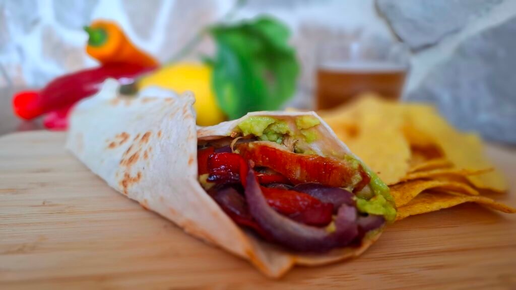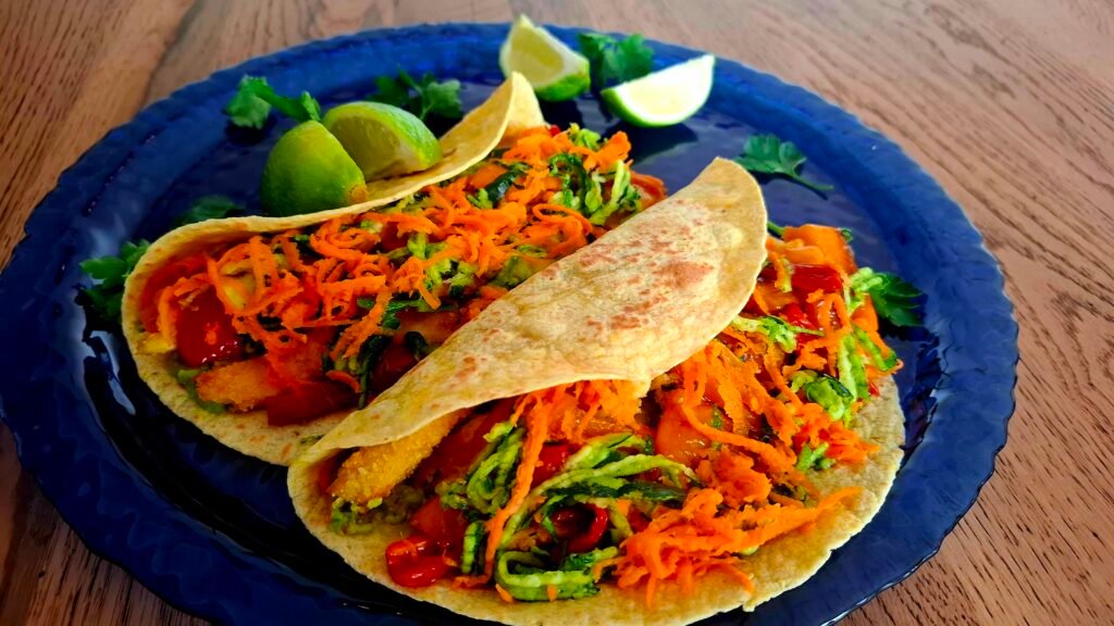 Non buttate il pollo del bollito! Trasformatelo in tacos di pollo impanato: aggiungete la cremosità del guacamole, la vivacità dei peperoni e ultimate con zucchine e carote arricciate. Una ricetta di recupero che conquista tutta la famiglia.